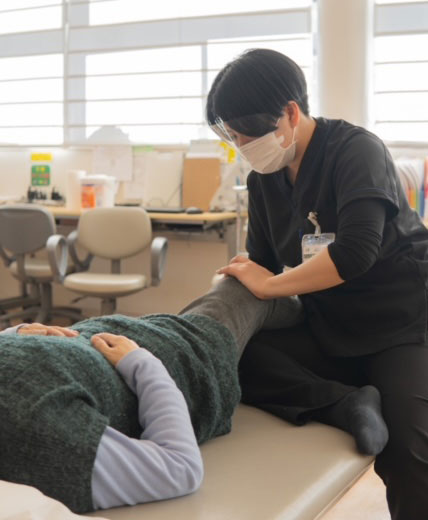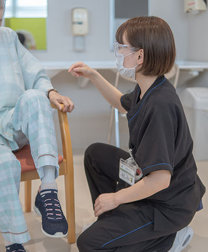 「立つ」や「歩く」といった動作能力の回復を担う専門職病気や長期入院をきっかけに、立つことや歩くことが出来なくなった方に対して、運動療法や電気治療を行います。最新の歩行介助機器を用いた動作訓練の提供も行います。