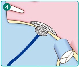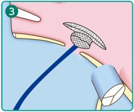 ③閉鎖栓の中心部を広げて欠損孔に近づける
