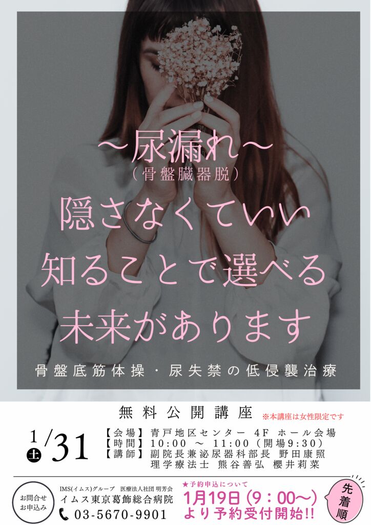 予約受付中 - 受付中 尿もれ(骨盤臓器脱)~隠さなくていい。知ることで選べる未来があります。