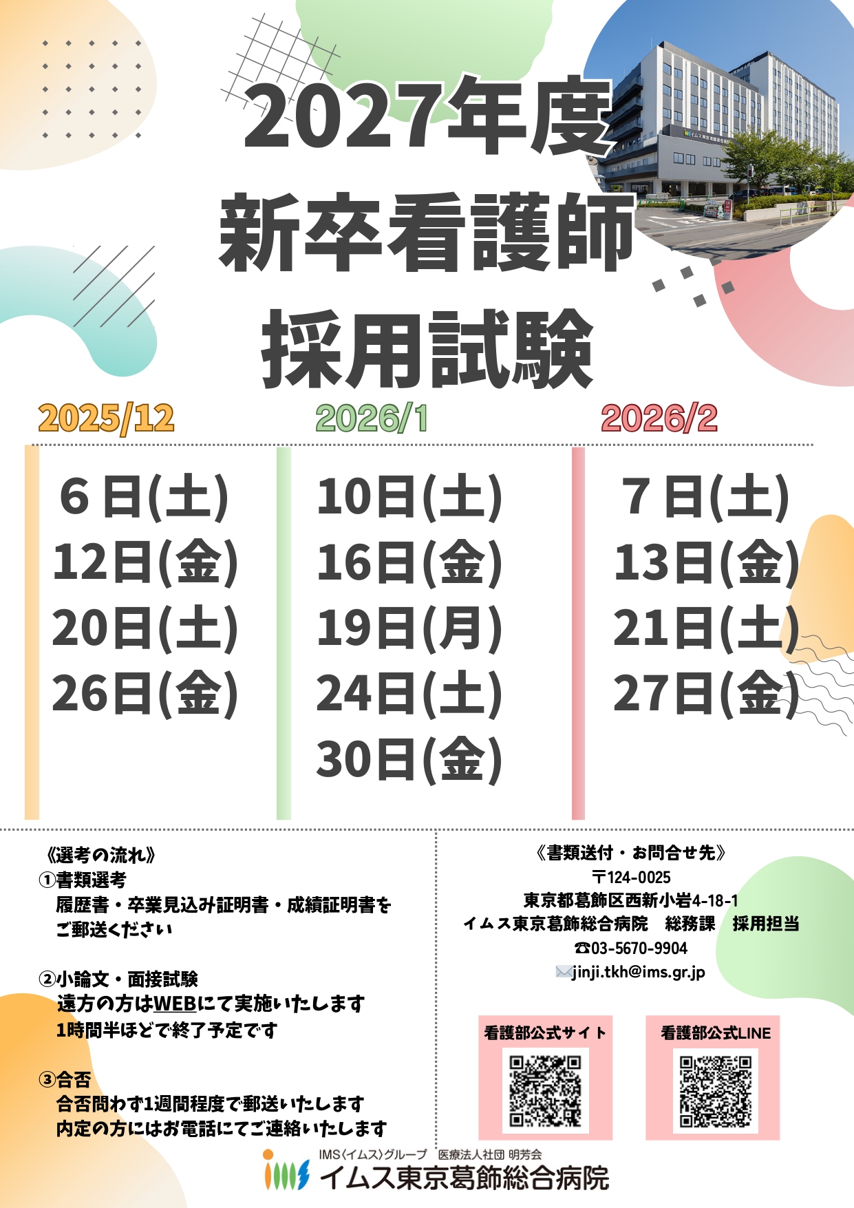 | 必要書類 | [新卒の方]履歴書・成績証明書・卒業見込み証明書 [中途の方]履歴書・看護師免許証コピー |