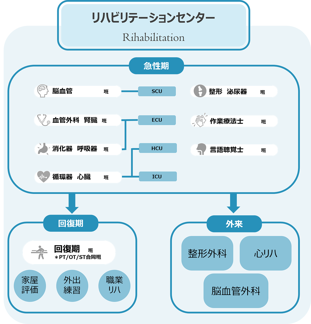 - 高度手術後のリハビリテーション(ICU・HCU・SCU・ECU)